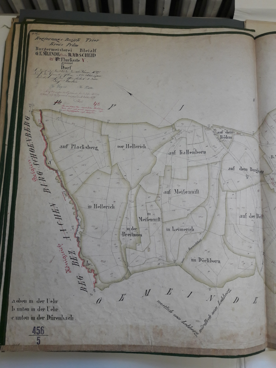 Waldparzellen I, II und III in Hellerich, 1827 im Besitz von Nikolaus ALTENDORF, Ackerer in Radscheid; 1860 wurde auf Anstehen von Nikolaus Altendorf Sohn, Ackerer zu Radscheid; den Eheleuten Catharina Altendorf und Nikolaus Köllers, Ackersleute zu Oberlascheid und Peter Probst, Ackerer zu Bleialf, Witwer von Maria Catharina Altendorf, als gesetzlicher Hauptvormund der noch minderjährigen Tochter aus dieser Ehe, ein Vereinbarungsakt vorm Notar Johann Georg Franz Martin Backes, königlich preussischer Notar mit Amtssitz in Prüm abgeschlossen. Bereits am 30.06.1867 verstarb die einzigste überlebende Tochter der Eheleute Probst-Altendorf, so dass alle aus Radscheid entstammenden Ländereien in den Eigentum von Peter Probst übergingen. Seine beiden Söhne aus zweiter Ehe Nikolaus Probst I in Manderfeld und Nikolaus Probst II in Bleialf erbten ein Flurstück in Hellerich. Bei der Erbauseinandersetzung vor Heinrich Backes, Notar in Prüm am 20.06.1950 zwischen Nikolaus Probst II, Landwirt in Bleialf und seinen Kindern erhielt mein Großvater Nikolaus Probst jun. u.a. im Grundbuch von Oberlascheid Blatt 200, Flur 5 Nummer 546/137, in Hellerich, Holzung in Eigentum.