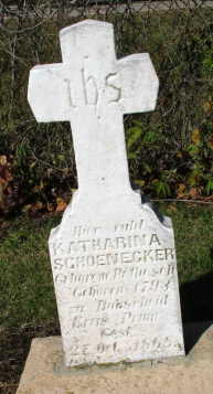 Der nebenstehende Grabstein schmückt in den USA das Grab von Katharina SCHÖNECKER geb. PETERS. Sie wurde 1794 in Dackscheid, Pfarrei Waxweiler als Tochter der Eheleute Matthias PETERS und Katharina THIELEN geboren. Am 27./28. November 1829 hat sie vorm Standesamt Waxweiler und Katholische Pfarrkirche in Waxweiler ihren Ehemann Johann SCHÖNECKER vom Berscheiderhof geheiratet. Johann war 1790 geboren und ist 1848 in Niederpierscheid gestorben. Zwischen 1830 und 1835 wurden vier Söhne in Lambertsberg geboren, die zusammen mit ihrer Mutter nach Nordamerika auswanderten. 3 der Söhne gründeten Familien in den USA, einer starb unverheiratet 55jährig 1888 in Richfield, Minnesota. Katharina SCHÖNECKER, starb am 27.10.1868 in Union Hill, Scott, MN, USA, 74jährig.