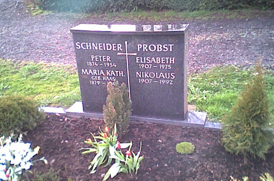 Die Eheleute PROBST-SCHNEIDER, hatten 7 Kinder, wovon der Sohn Eduard *1940 †/▯ 1941 auf dem Bleialfer Friedhof beigesetzt wurde. Das Kindergrab ist aufgelöst.