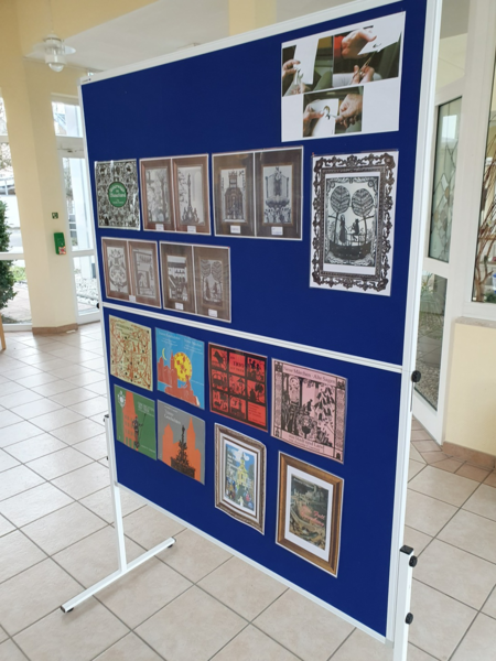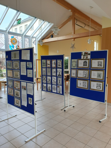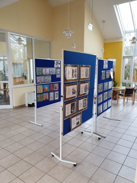 Aus Anlaß des 100. Geburtstags einer Bewohnerin organisierte der Soziale Dienst, eine Ausstellung über Scherenschnitte, die eine Bewohnerin mit großer Kunst hergestellt hat. Sie hat bereits als Kind ihre Aufsätze mit Bildern illustriert, später schrieb sie viele Bücher mit Märchen und Sagen und illustrierte diese Geschichten mit aufwändig gestalteten Scherenschnitten.